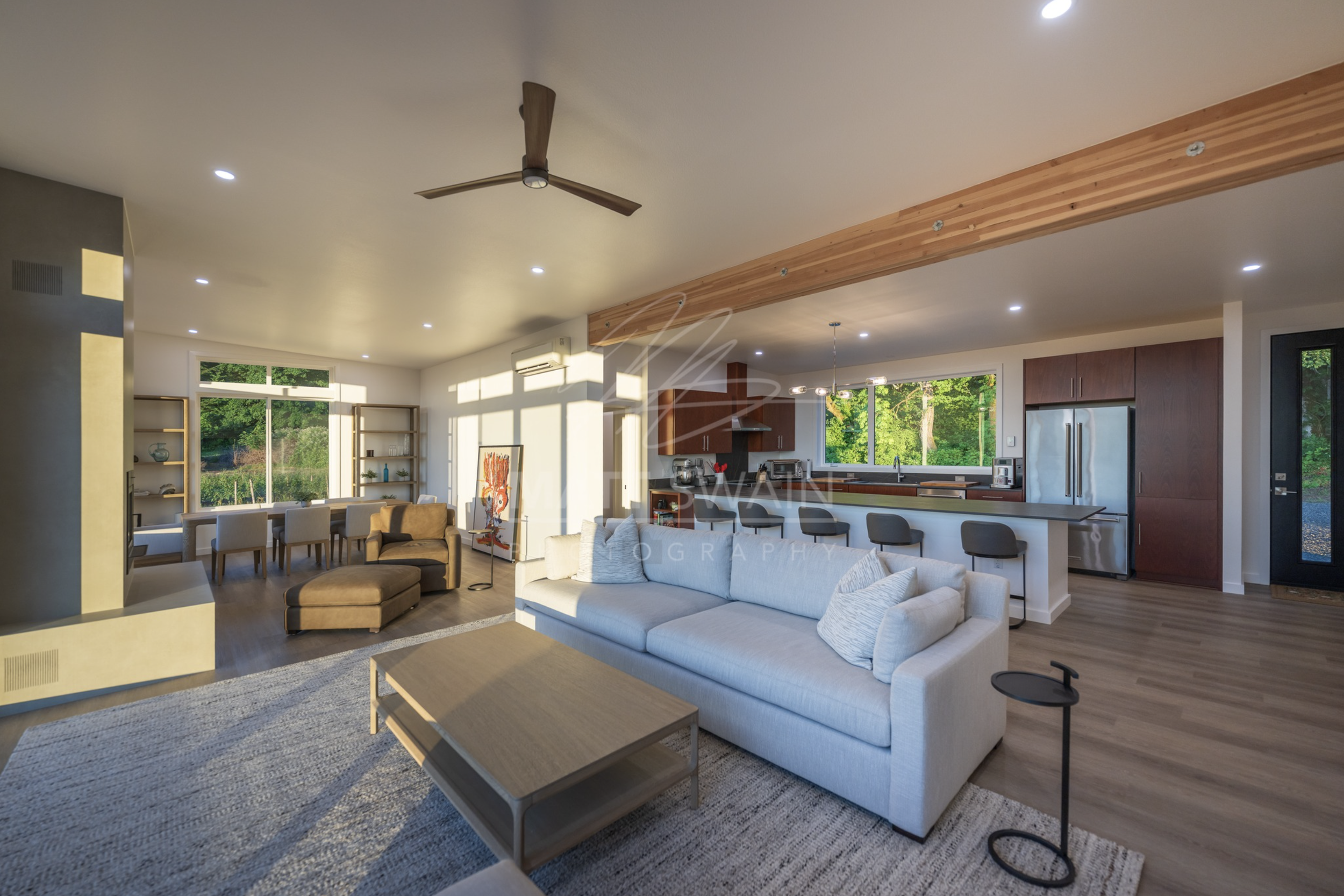 The project spanned several months and multiple photo shoots across diverse locations. We began with fresh team portraits and candid shots of the talented individuals behind Ideabox. Next, we created custom stock imagery showcasing their design process and home selection experience. Our work then took us to Blazer Industries Inc where these innovative homes are assembled inside a massive warehouse, and finally to stunning homesites across the Willamette Valley to photograph the finished residences in their natural settings.