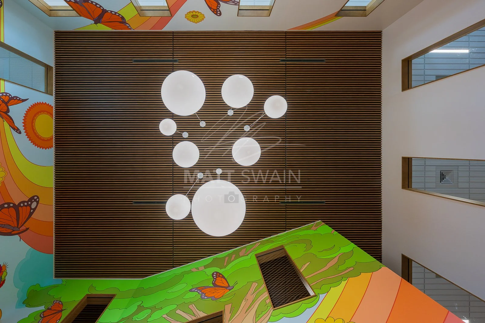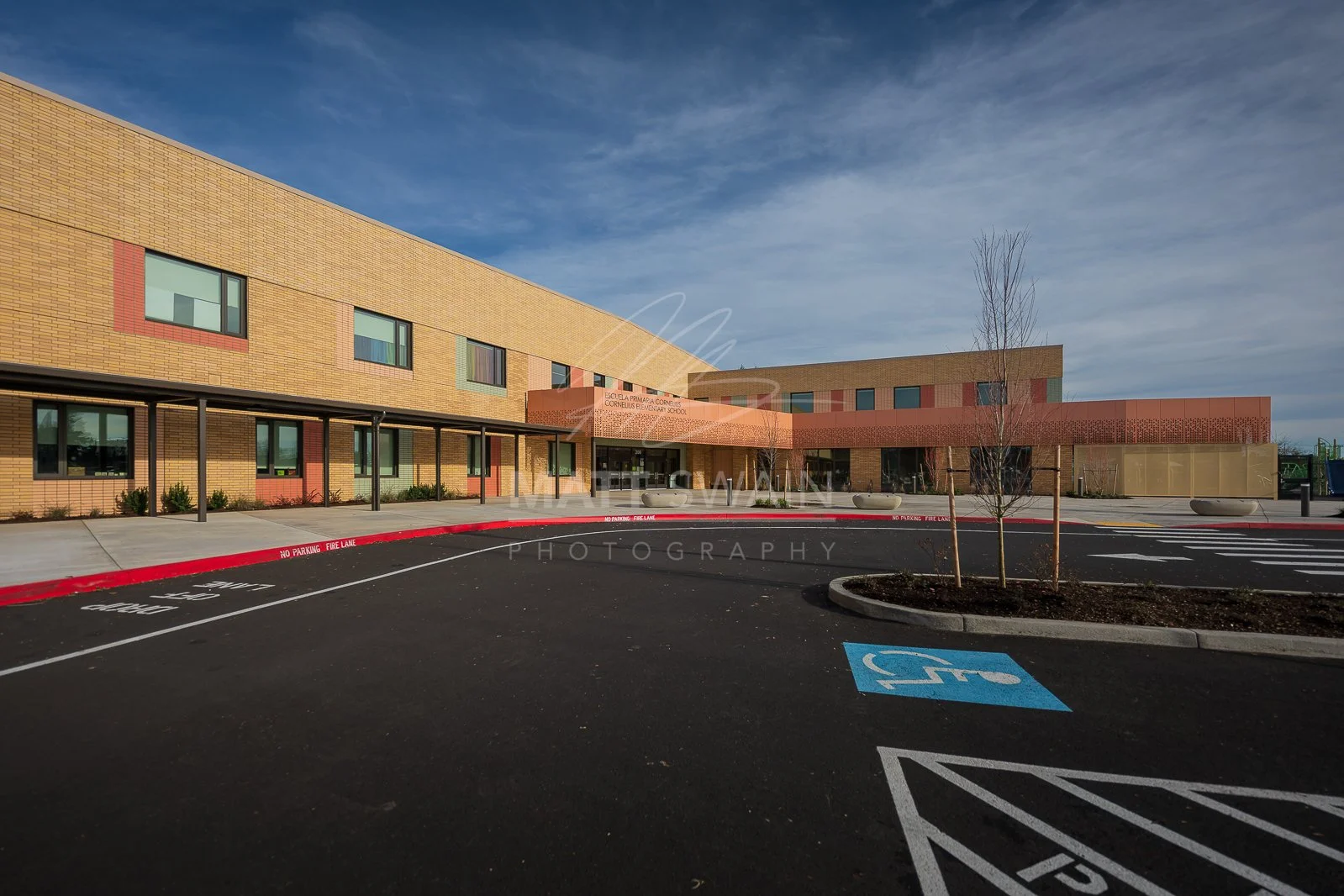 Designed by Mahlum Architects Inc. and built by Pence Contractors, Cornelius Elementary reflects a thoughtful approach to educational design that is deeply rooted in its local community. From the moment you enter, a vibrant custom mural sets the tone, signaling that this is a place where creativity and curiosity are meant to thrive. Natural light, purposeful color choices, and carefully framed sightlines work together to create an environment that feels both energizing and welcoming.
