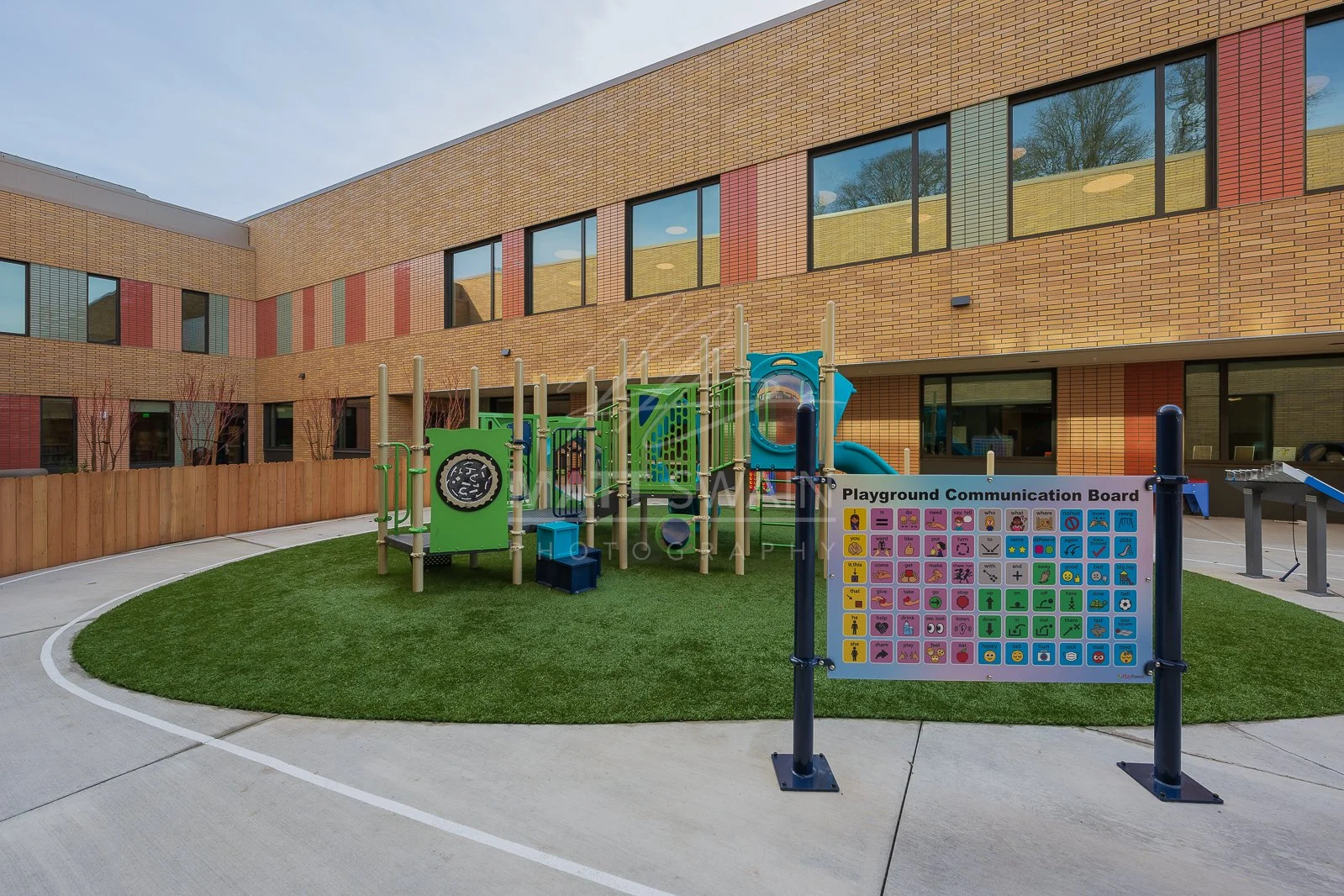 Throughout the school, small learning nooks provide spaces for focused study and quiet reading, while outdoor courtyards extend the classroom beyond four walls. These secure, thoughtfully designed exterior areas offer students and staff opportunities for fresh air, movement, and hands-on learning. Projects like this are a reminder that when architecture is intentional, it actively supports the way students learn, gather, and grow